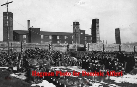 next Photo shows the various sized sewer pipes in piles in the tile Yard.